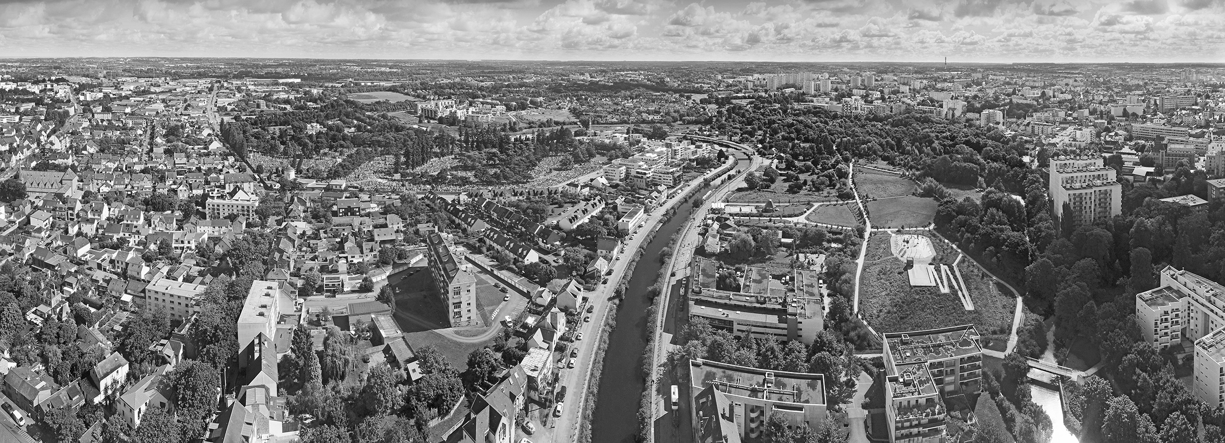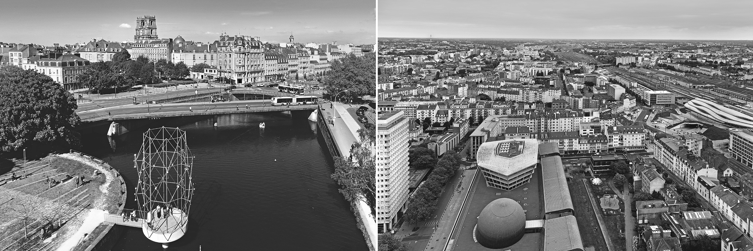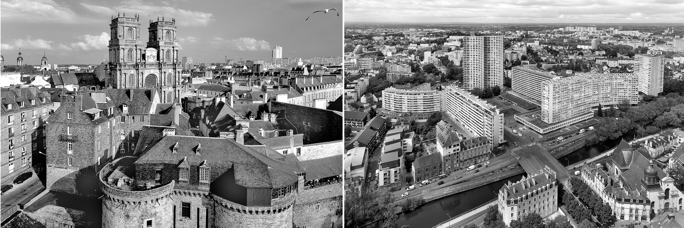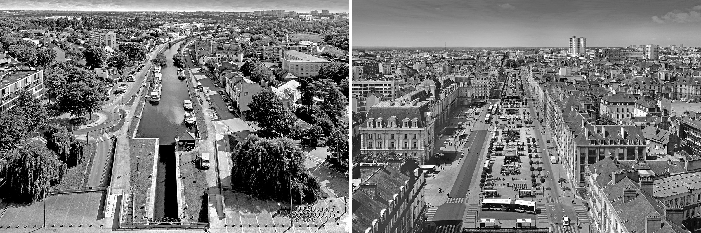 Rennes la ville rouge dont les toits d’ardoise se marient parfaitement au noir et blanc. Vision passéiste d’allure moderne rehaussée par une multitude de contrastes qui interroge la vue urbaine.