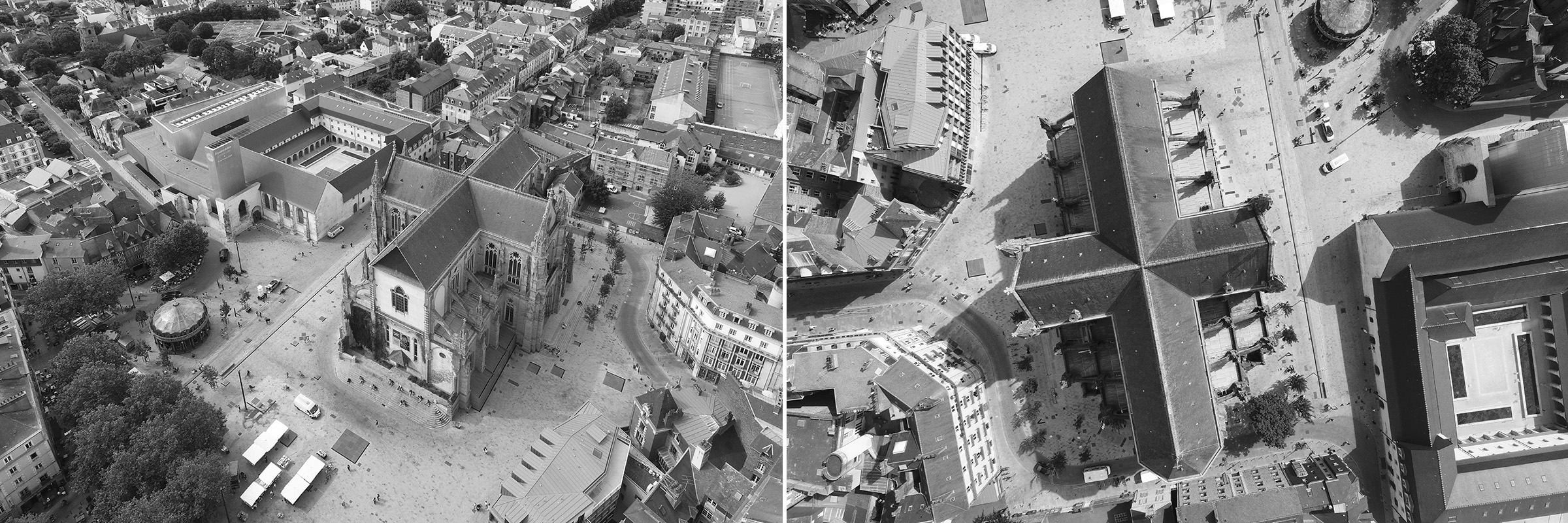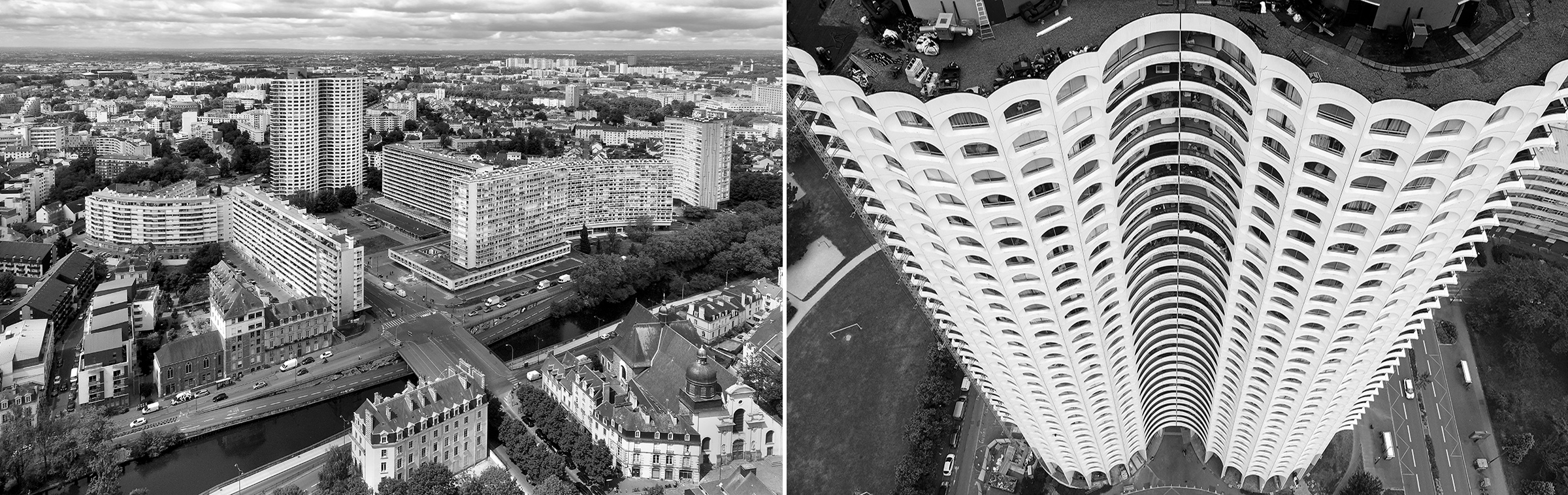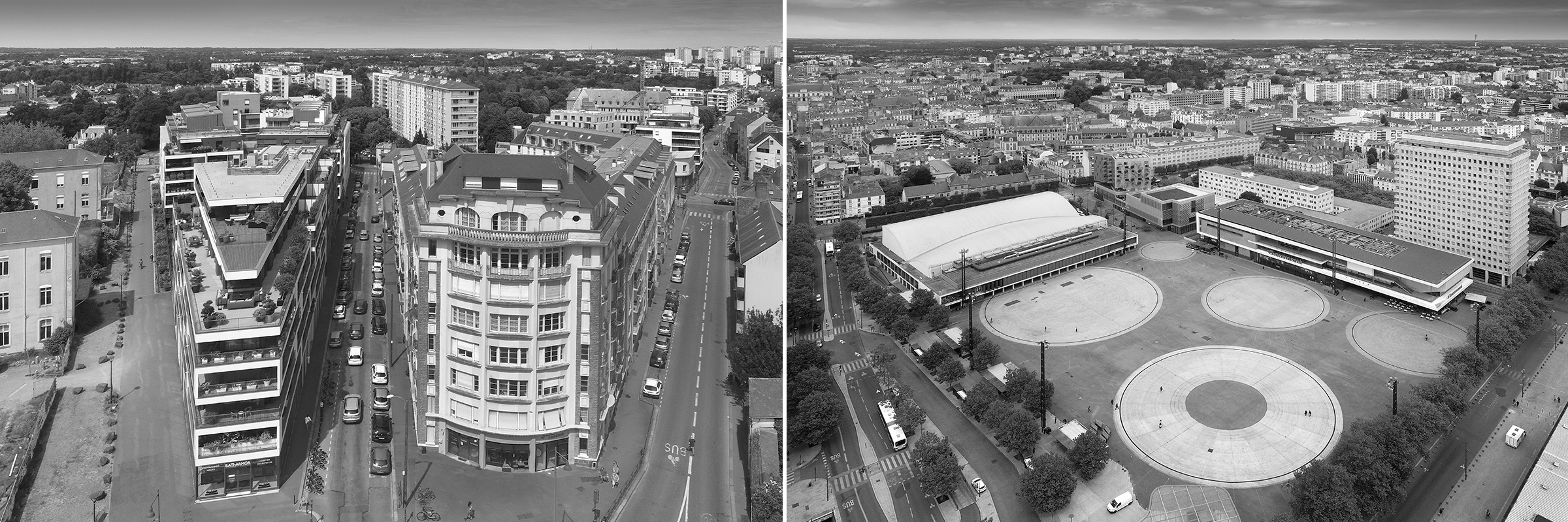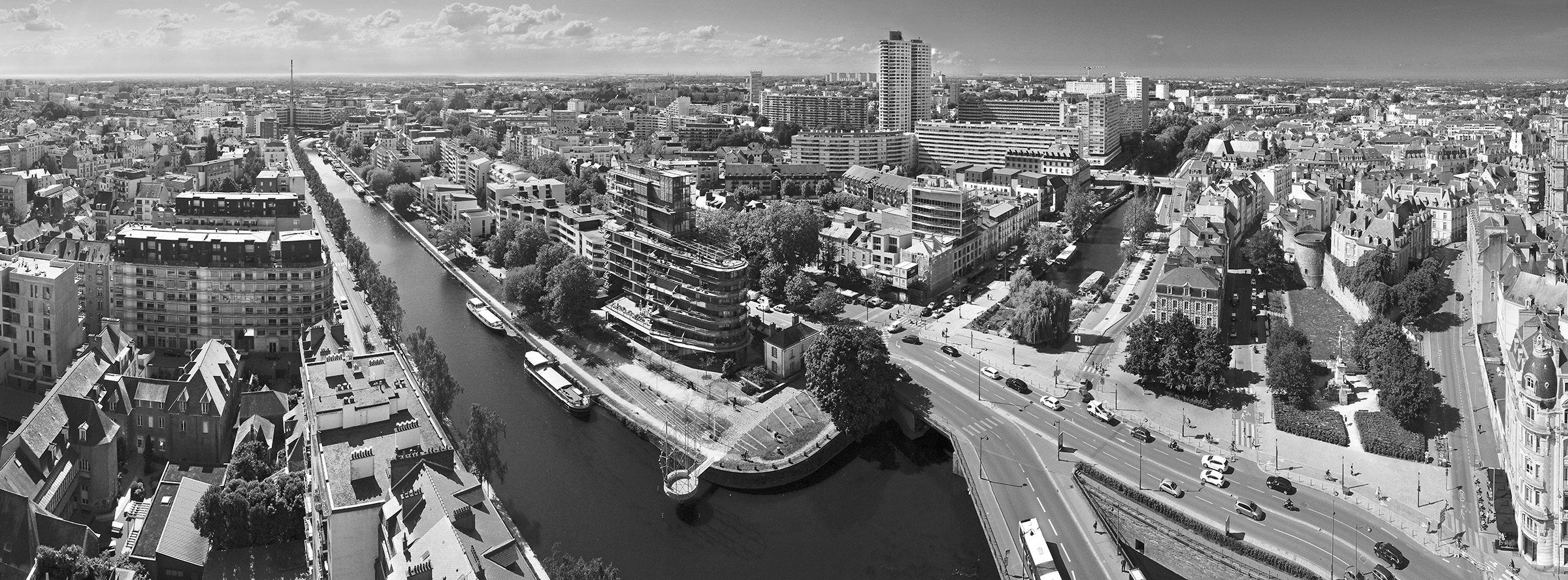 Rennes la ville rouge dont les toits d’ardoise se marient parfaitement au noir et blanc. Vision passéiste d’allure moderne rehaussée par une multitude de contrastes qui interroge la vue urbaine.