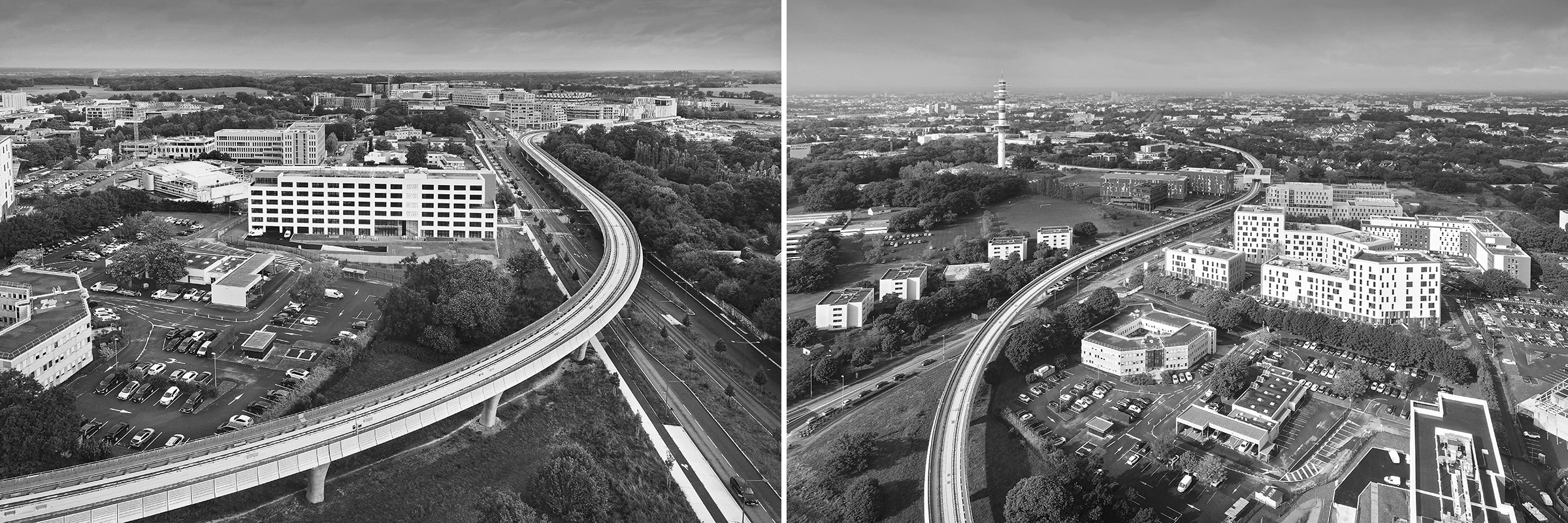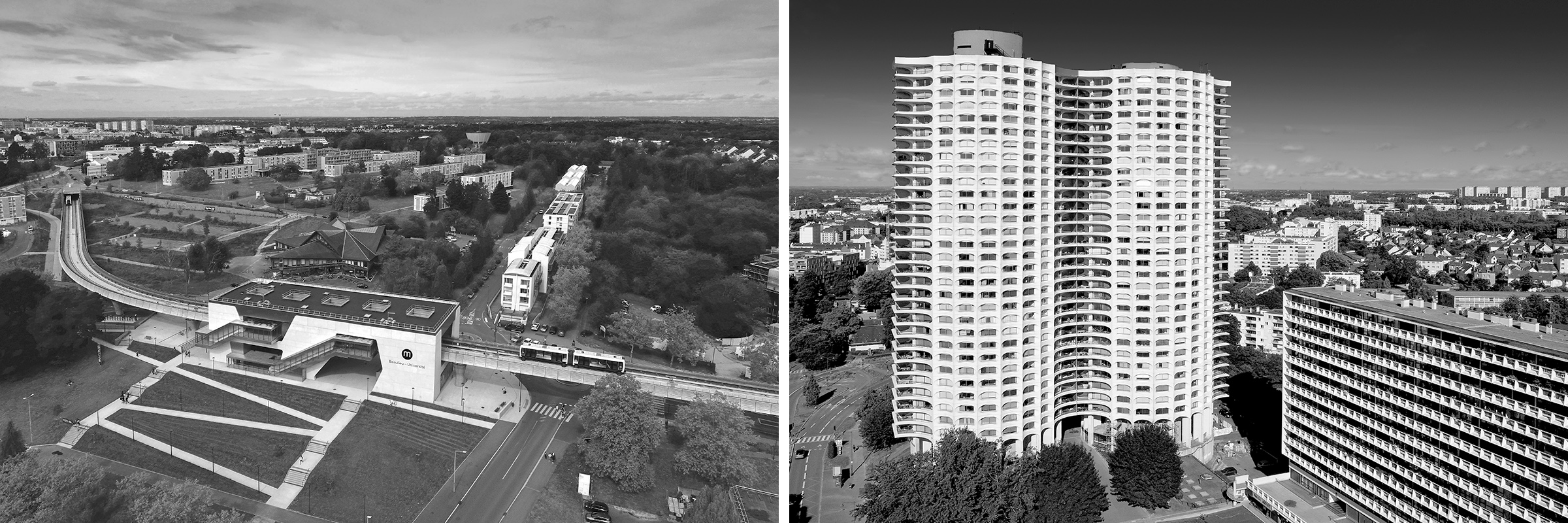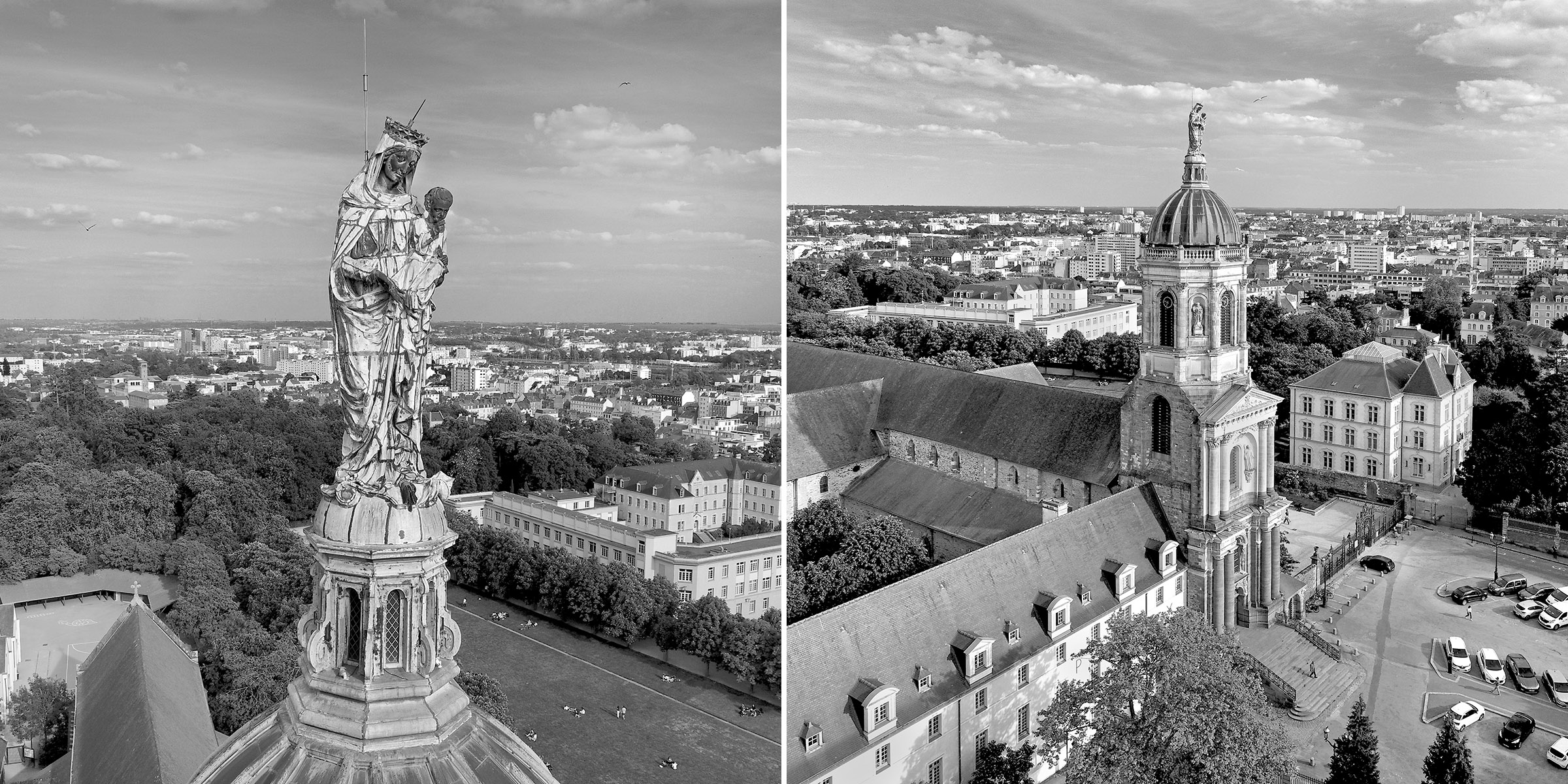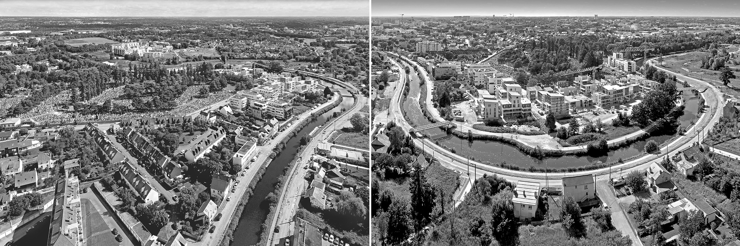 Rennes la ville rouge dont les toits d’ardoise se marient parfaitement au noir et blanc. Vision passéiste d’allure moderne rehaussée par une multitude de contrastes qui interroge la vue urbaine.