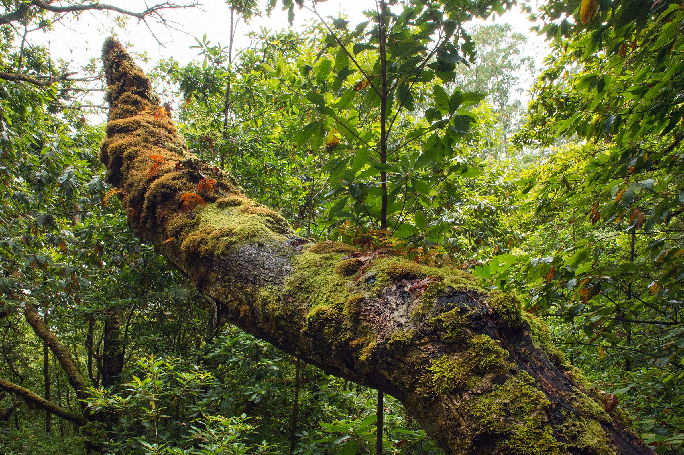Humide et verte exposée au nord, la crête de l'ile retient les nuages.