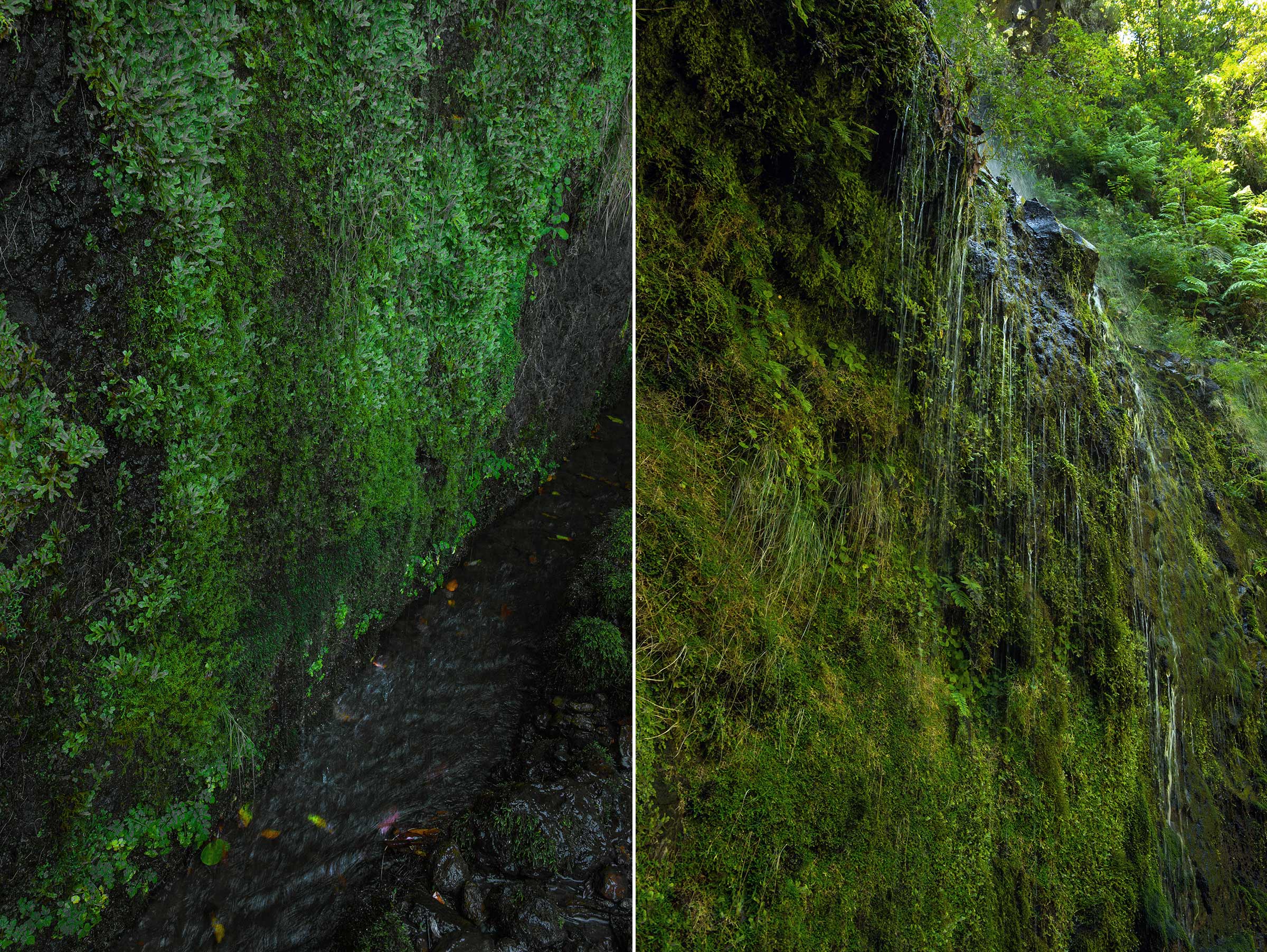 Parmi Les levadas de Madeira, l'une des plus somptueuses est celle du Caldeirao verde, un ancien cratère devenu vert. Sur le long de ses 6,5 km serpente un mur végétalisé naturel que l'on cotoie d'un pas précis à pic de falaise. Protégé du vide par une simple rambarde ou souvent d'un cable, le vertige du vert efface celui de l'air.
