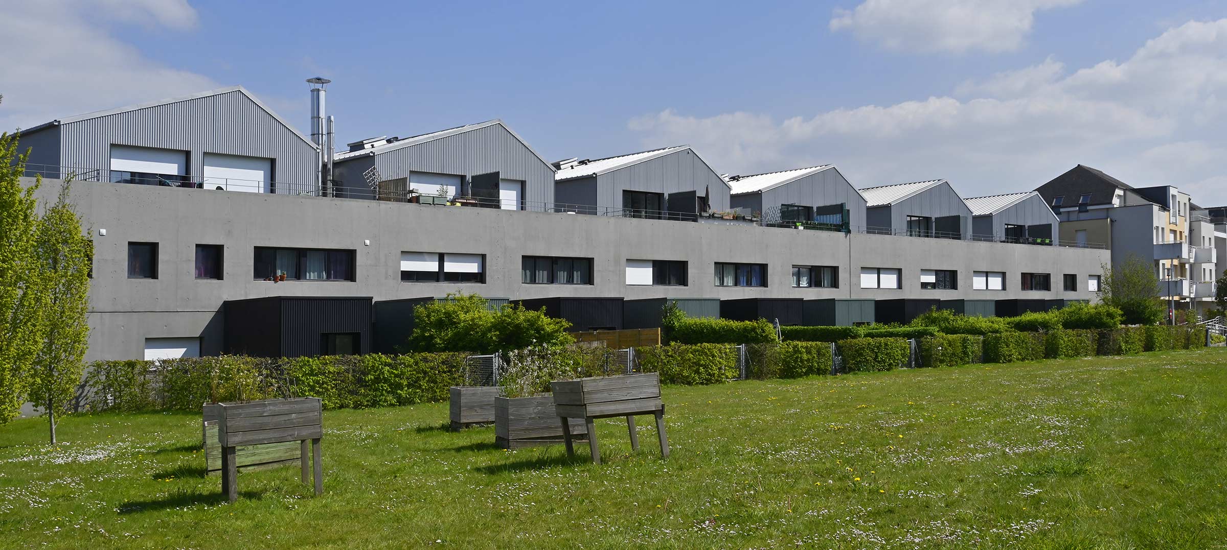La Courrouze située au sud-ouest de Rennes s'étend aussi sur la commune de St-Jacques de la-Lande où un éco-quartier extra-rocade jumelle La Courrouze.